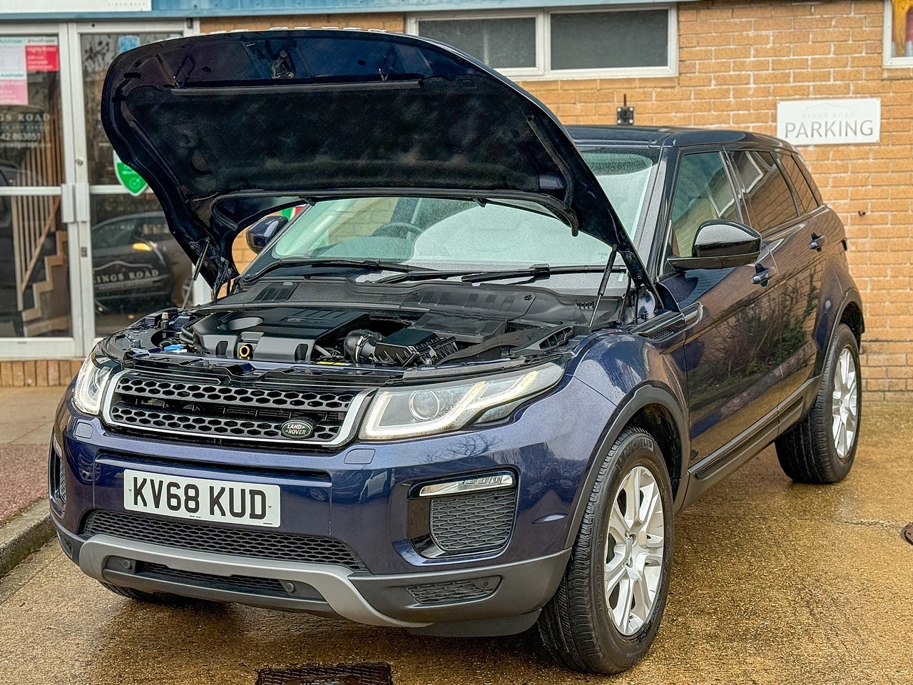 Thank you for viewing our lovely Range Rover Evoque! This low mile SE Tech example is finished in Loire blue with cream full leather, which is heated in the front seats. Park Aid, Panoramic glass roof, Navigation, auto lights, heated screen, bluetooth and much more also feature, plus all importantly it is ULEZ Compliant! Perfect colour scheme, 2 keys, very well looked after vehicle by its former owners who were long standing clients. All of our cars are fully and professionally inspected, detailed and serviced in our purpose built and fully equipped Jaguar / Land Rover Accredited workshop and offered with a new 12-month independent MOT prior to collection- excluding vehicles marked P/X to clear, as-well as ensuring a clear HPI record. We provide a 6-month full warranty which can be extended upon request to 12, 24 or 36 months as well as 12-months free AA Roadside Assistance. We can provide competitive finance packages to suit all requirements and cater a deal specifically to you. We also offer discounted servicing for any car bought from us returning for future works. Part Exchanges are very welcome just call us for a valuation and nationwide delivery is also available. We are 30+ year old established family run business. For after hours attention please call 07836 661500. Whatsapp available for videos/ further pictures or to arrange a viewing- Kieran 07766403110. Tracker fitting and storage available on request!